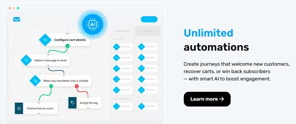 | Marketing Automation | $59 | $48.38 | $41.30 | All Email Marketing features plus unlimited marketing automation; abandoned cart recovery; promo codes; advanced segmentation; sales funnels; contact scoring; unlimited web push notifications. |