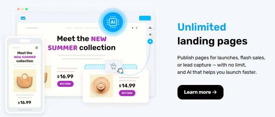 | Unique / standout features | Webinars & courses built-in; conversion funnels; unlimited sending on many plans; website builder | AMP email interactivity; live chat + phone support; strong beginner usability | AI-writer for landing pages; flexible landing pages; affordable; lots of customization |